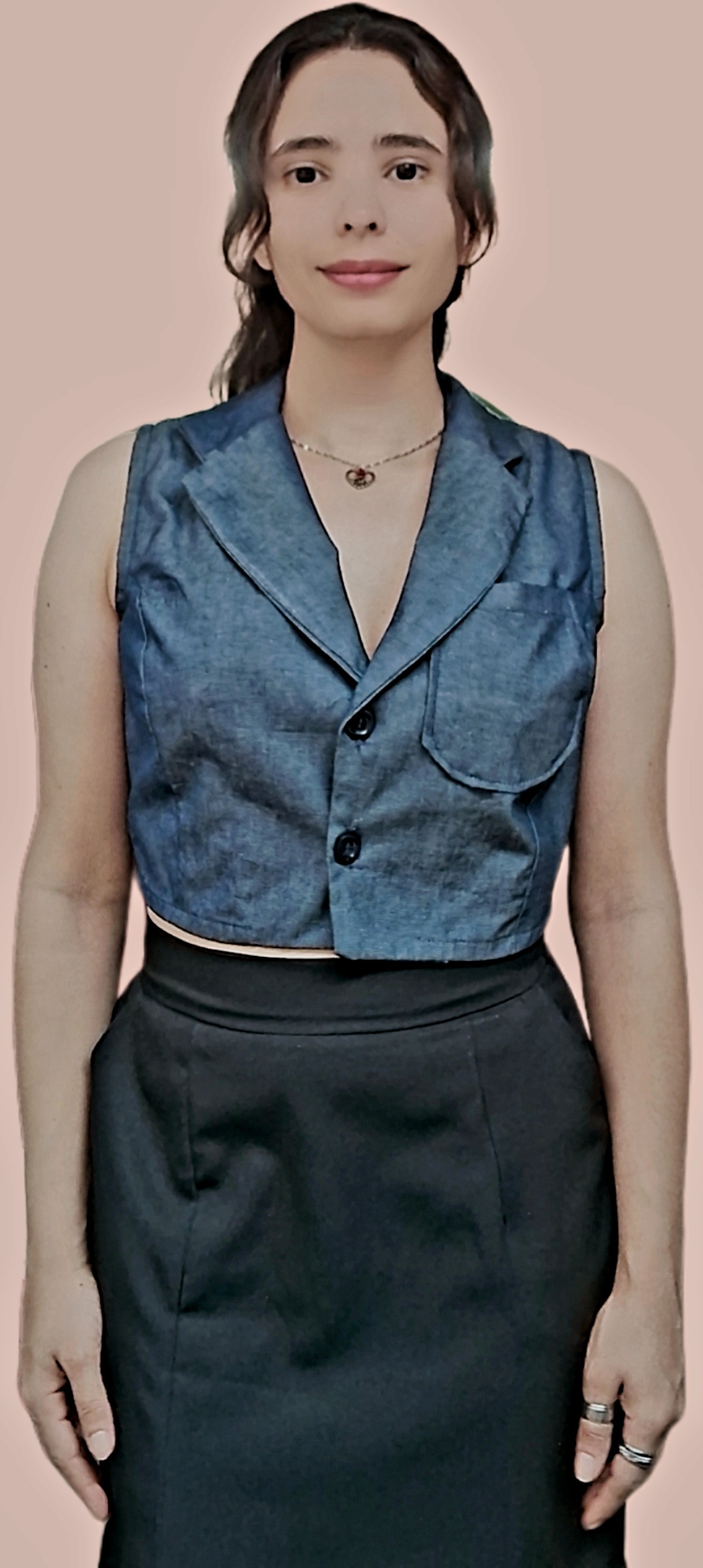 #ModaFeminina #ColeteDenim #EstiloAutêntico #LookModerno #FashionStyle